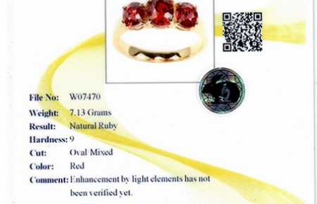 It does not constitute a guarantee for or an appraisal of the object or gemstone described therein.